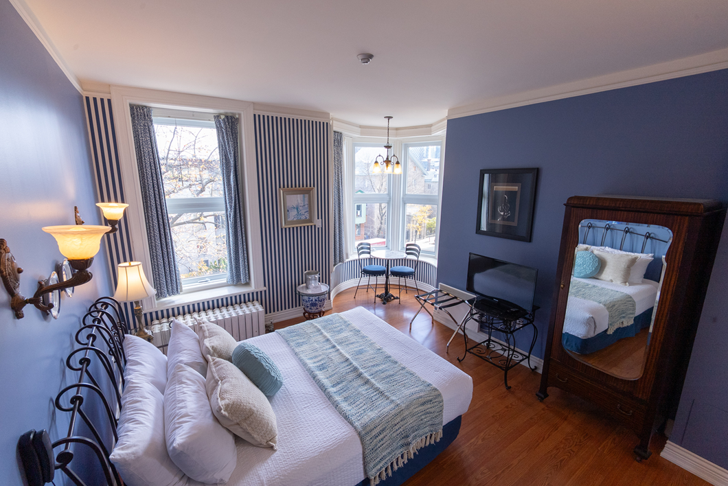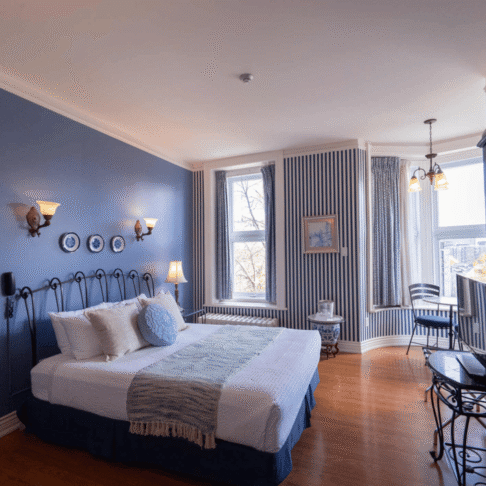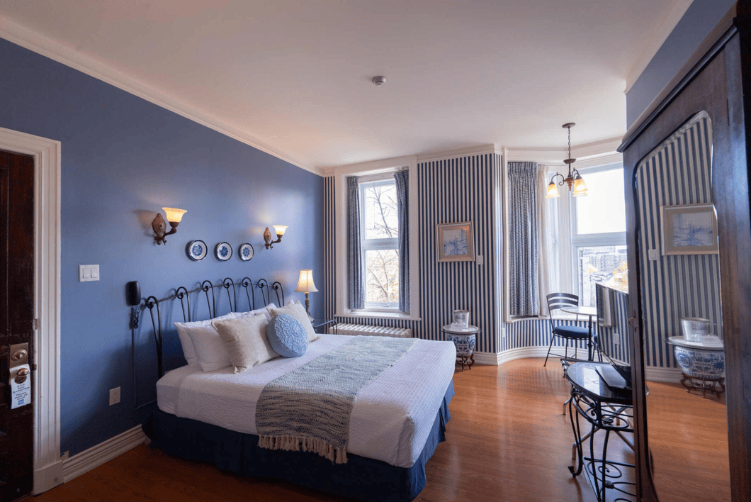 Hotel Manoir Sherbrooke is a century old home transformed in an exquisite budget boutique style inn. Each room is unique and has been tastefully decorated in a Victorian style, keeping with the building’s historical character. Hotel Manoir Sherbrooke with its charming rooms and personalized service is the perfect choice for a romantic getaway,for business clients and for tourists alike. This four story centennial building is not handicapped accessible and not equipped with an elevator.